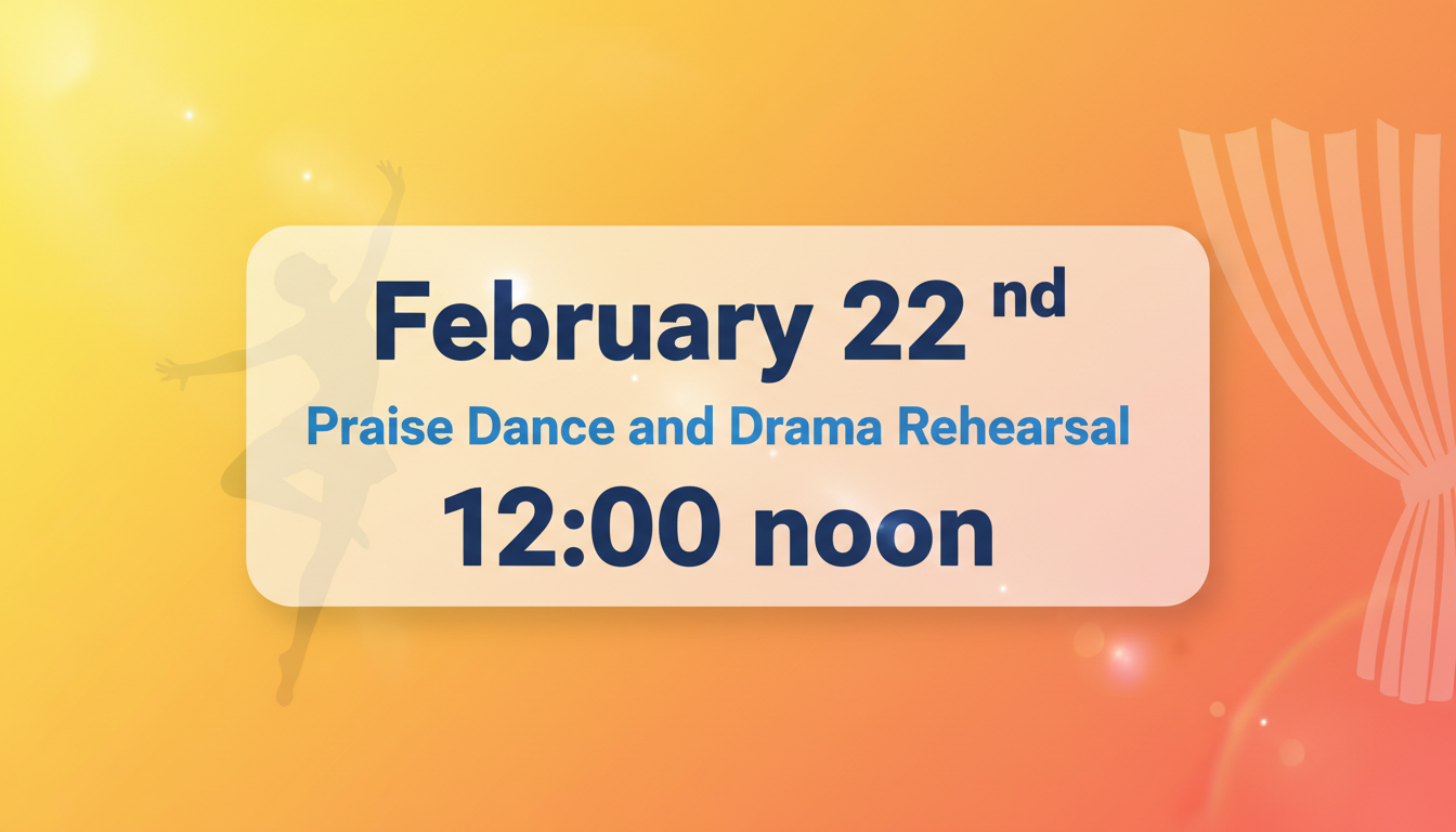 ● February 22 nd – Praise Dance and Drama Rehearsal at 12:00 noon.